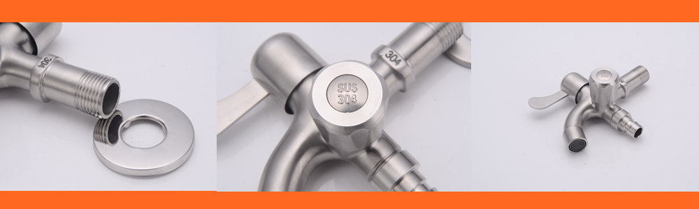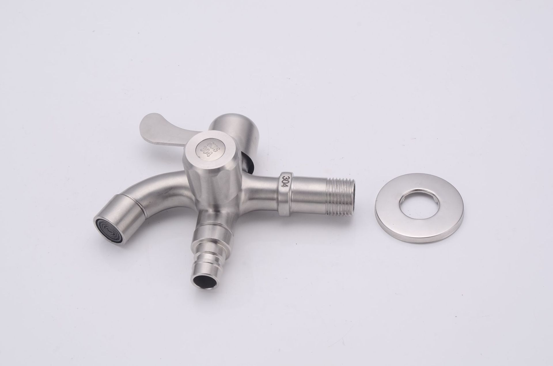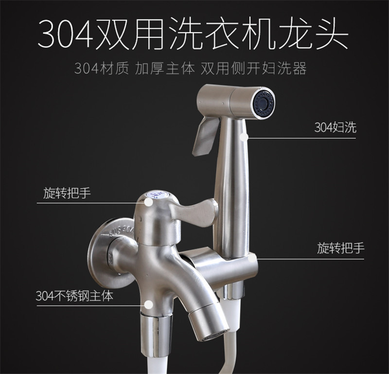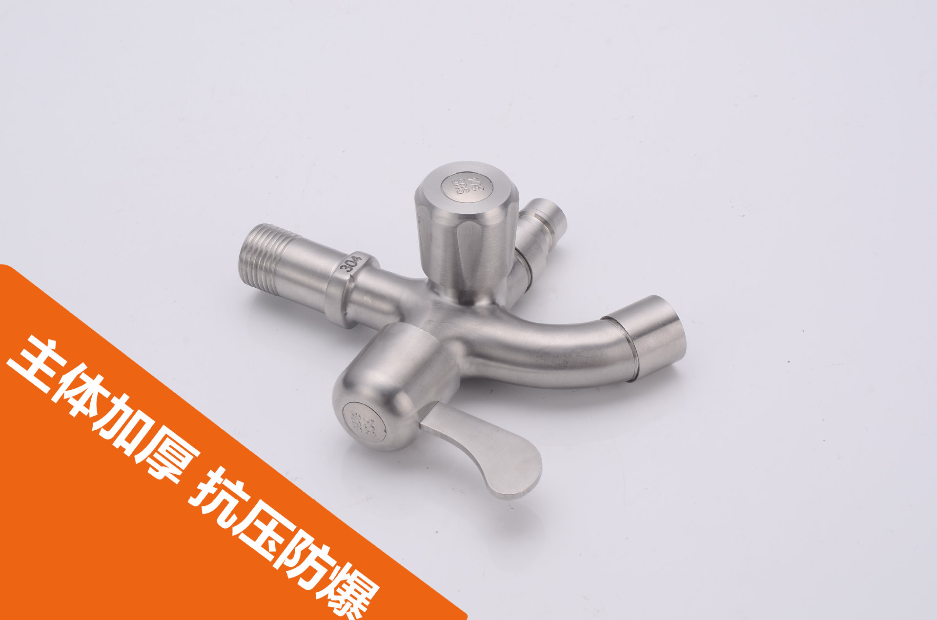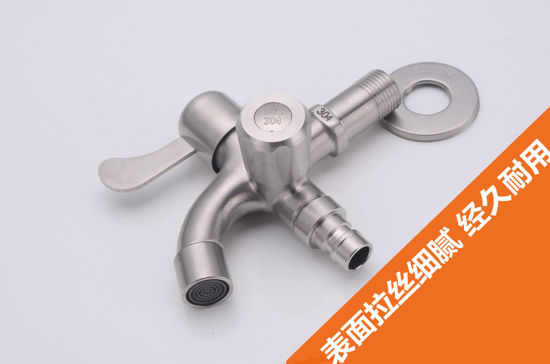 304不锈钢水龙头一进二出 多功能双出水洗衣机水龙头尖嘴套装