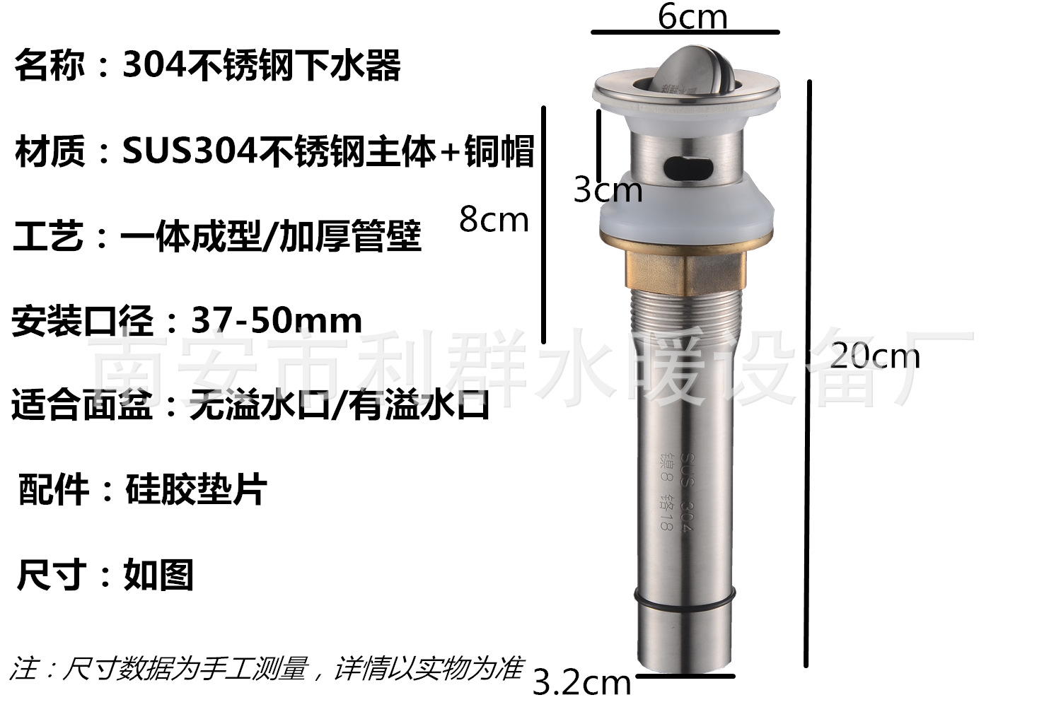 新品面盆下水器 304不锈钢下水洗手盆翻板弹跳下水器配件厂家批发