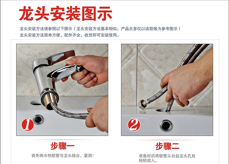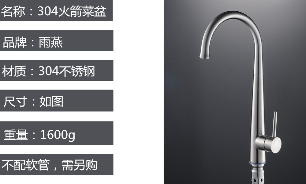 雨燕卫浴 304不锈钢菜盆龙头软管 厨房面盆龙头单头冷热进水管