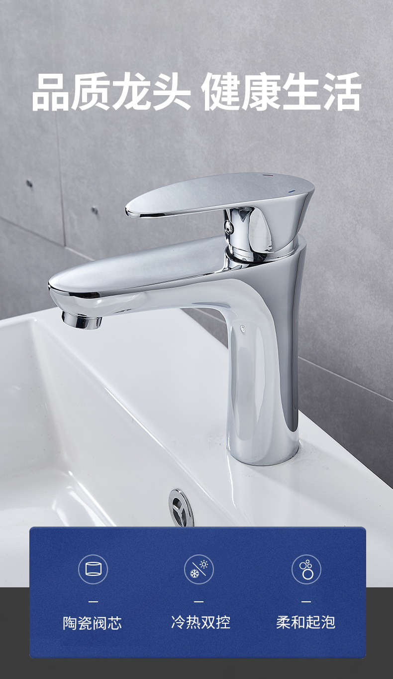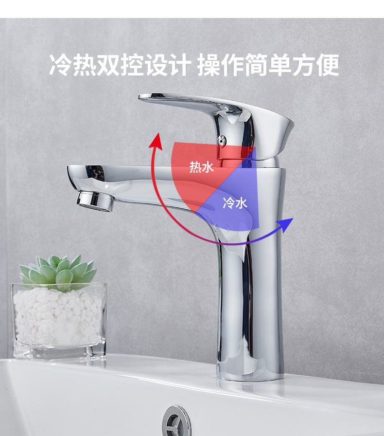 全铜家用面盆水龙头单孔冷热镀铬水龙头酒店卫生间洗手台龙头批发