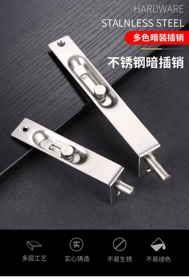 插销门栓锁安全防火门天地双开子母门窗隐形黑色不锈钢加长暗插销