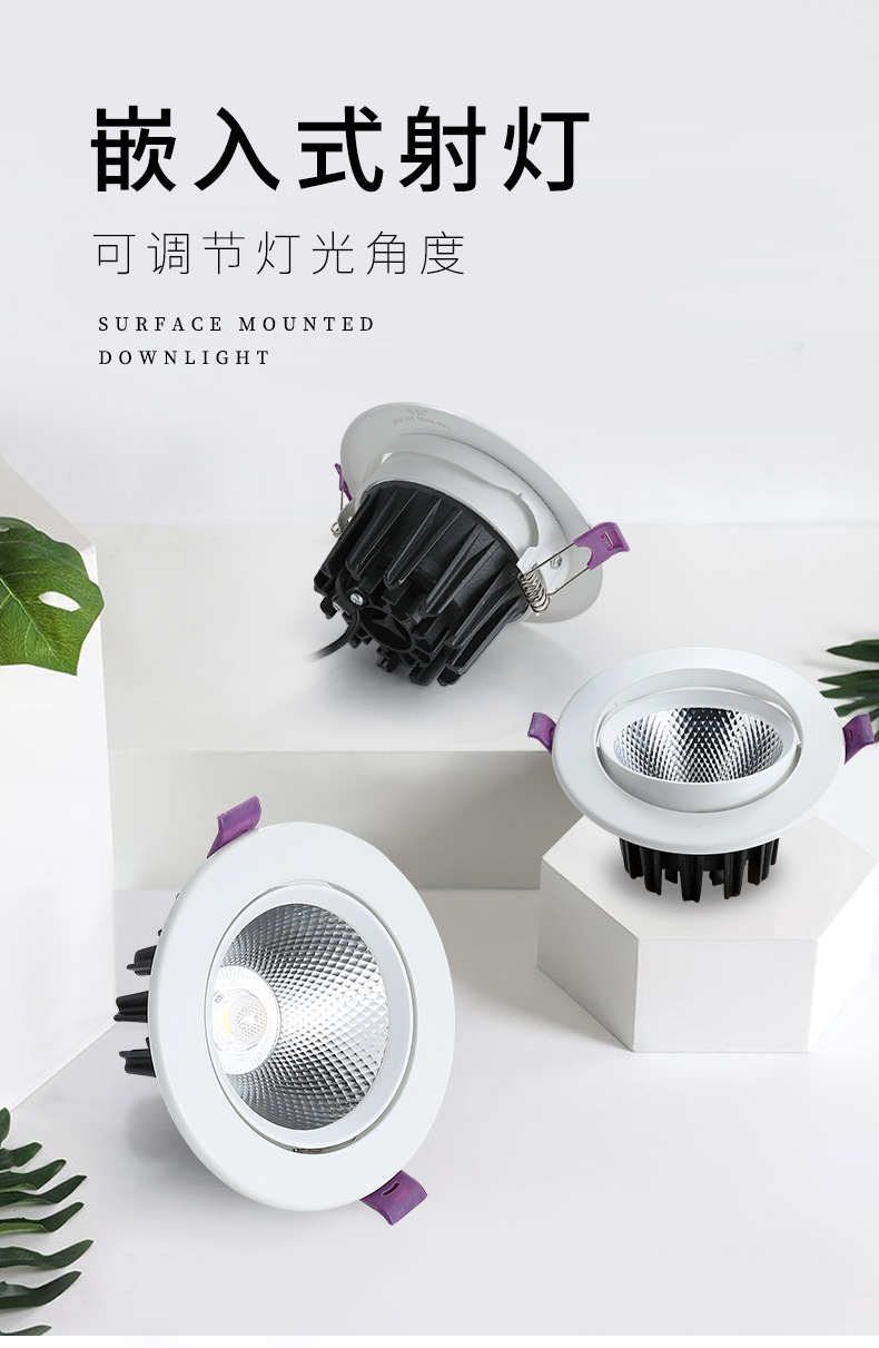 中山厂家定制各种色温规格的开孔7.5 9 12可调式LED天花灯COB射灯