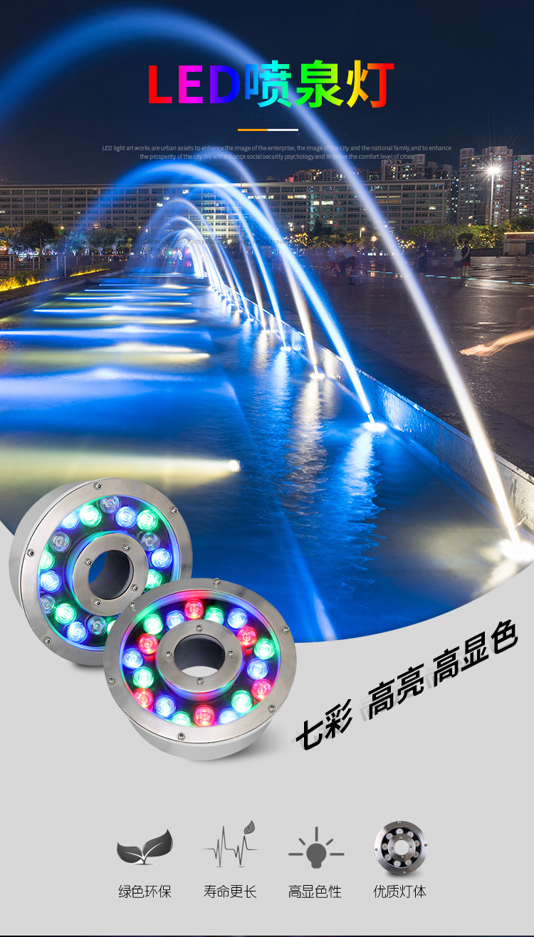 喷泉灯 低压DC24V七彩景观灯 6 9 12 18W 不锈钢IP67水底喷泉灯