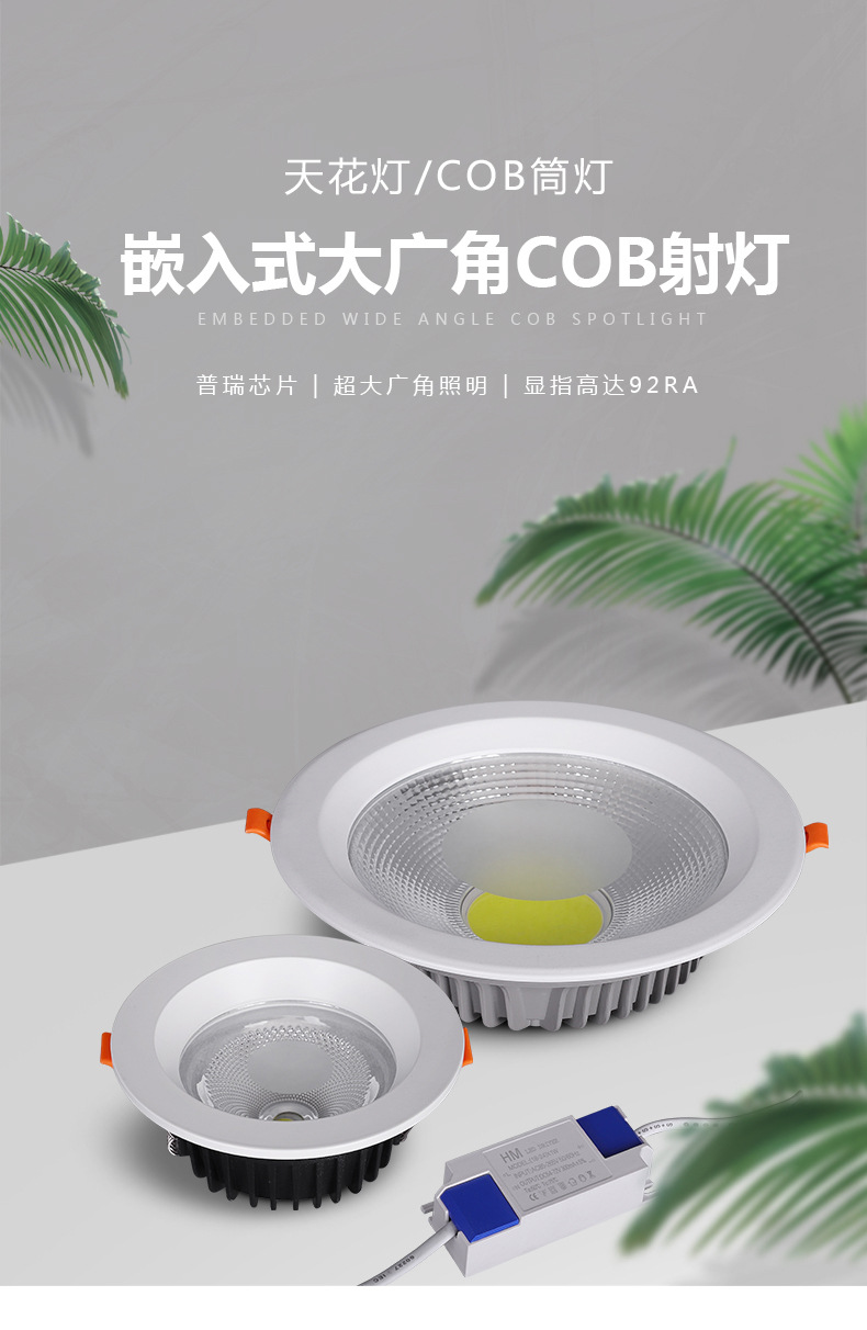 工厂定制COB筒灯 20 30 40瓦LED暗装射灯2.5 3 3.5 5 6 8寸天花灯