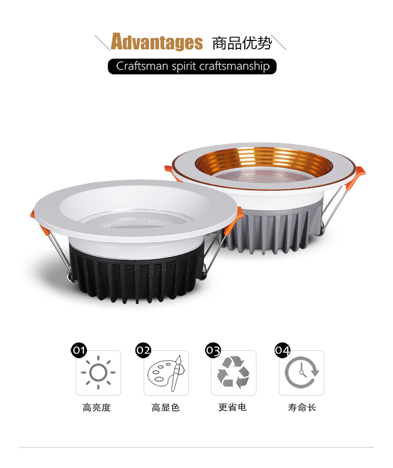 COB筒灯2.5 3 3.5 4 5 6 8寸普瑞芯片显指90 LED天花射灯light