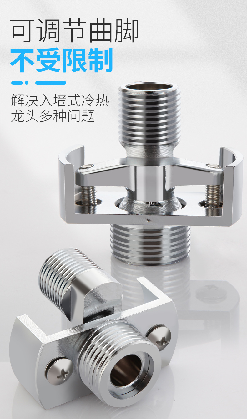 定制万向曲脚弯脚淋浴接头铜花洒淋浴龙头拐角偏芯免砸墙配件批发