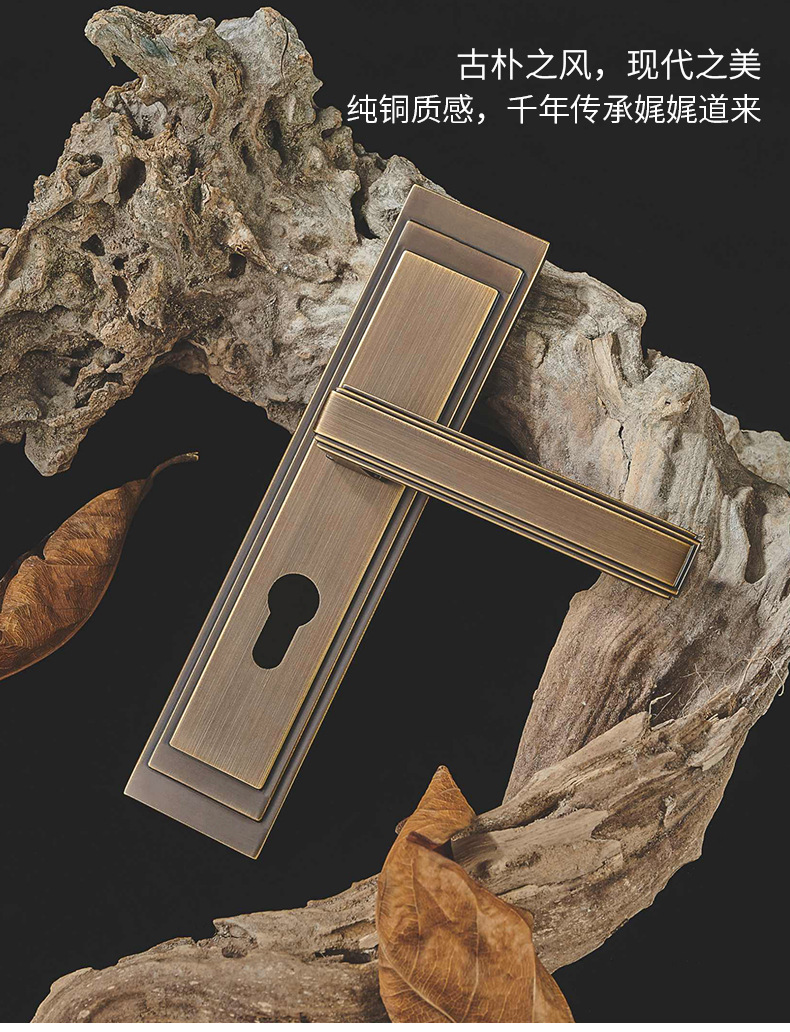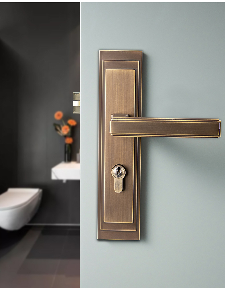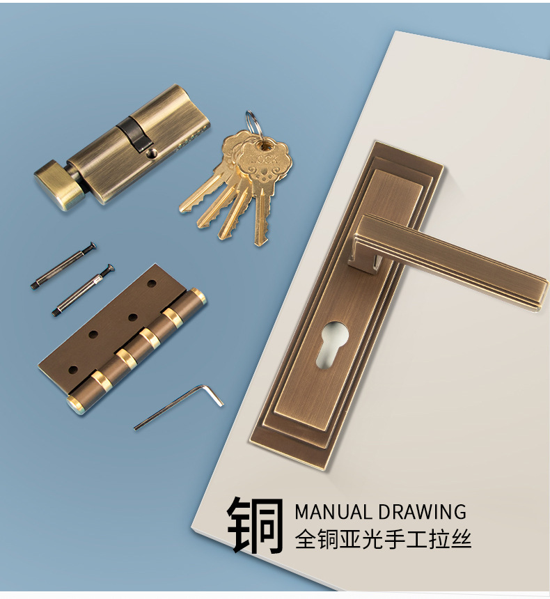 厂家货源全铜木门门锁卧室房门锁静音实木门把手纯铜分体黑色铜锁