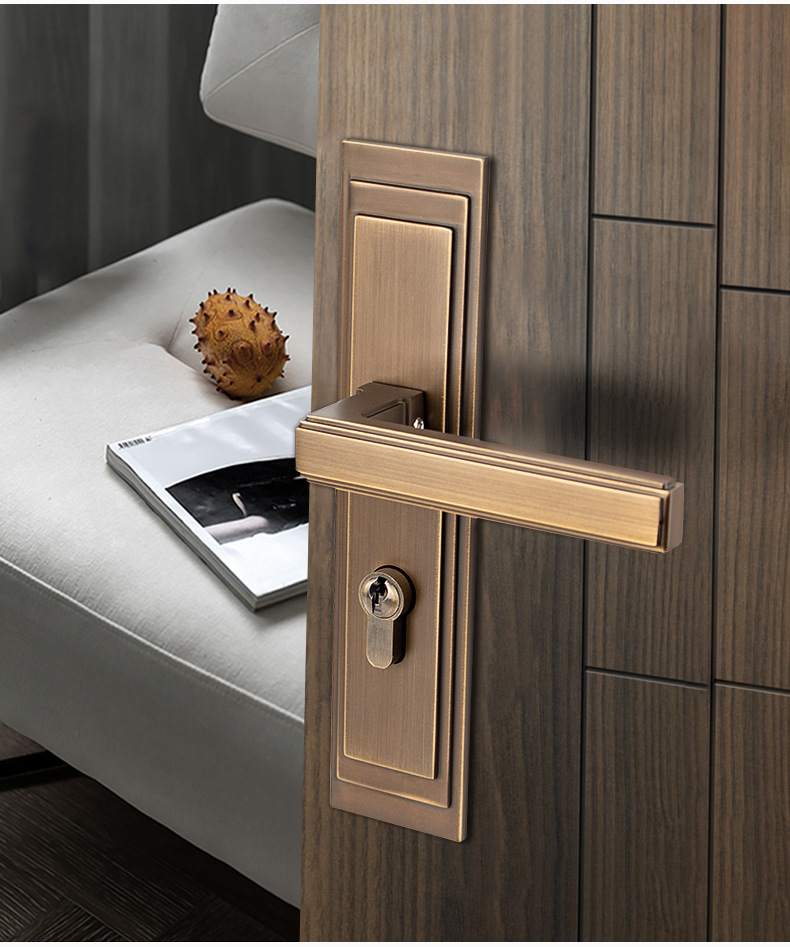 厂家批发静音室内门锁磁吸锁体全铜木门一体锁具简约咖啡色执手锁