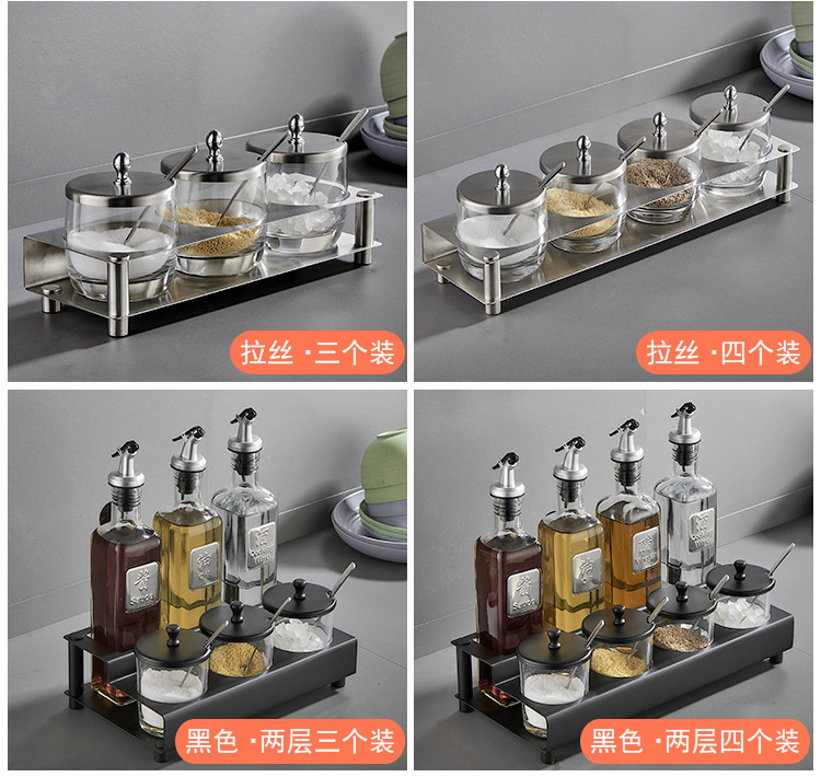 不锈钢厨房玻璃不锈钢置物架调味罐调料盒调料瓶调味瓶调料罐油壶