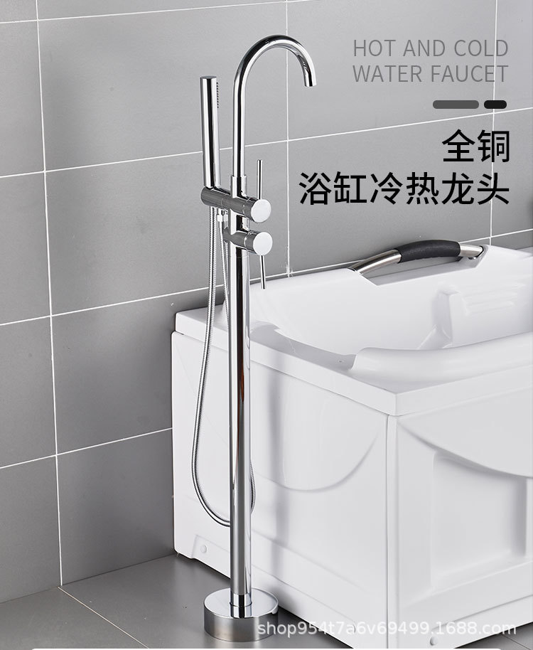 欧式全铜镀铬落地式独立浴缸水龙头缸边立式木桶立柱盆淋浴柱花洒