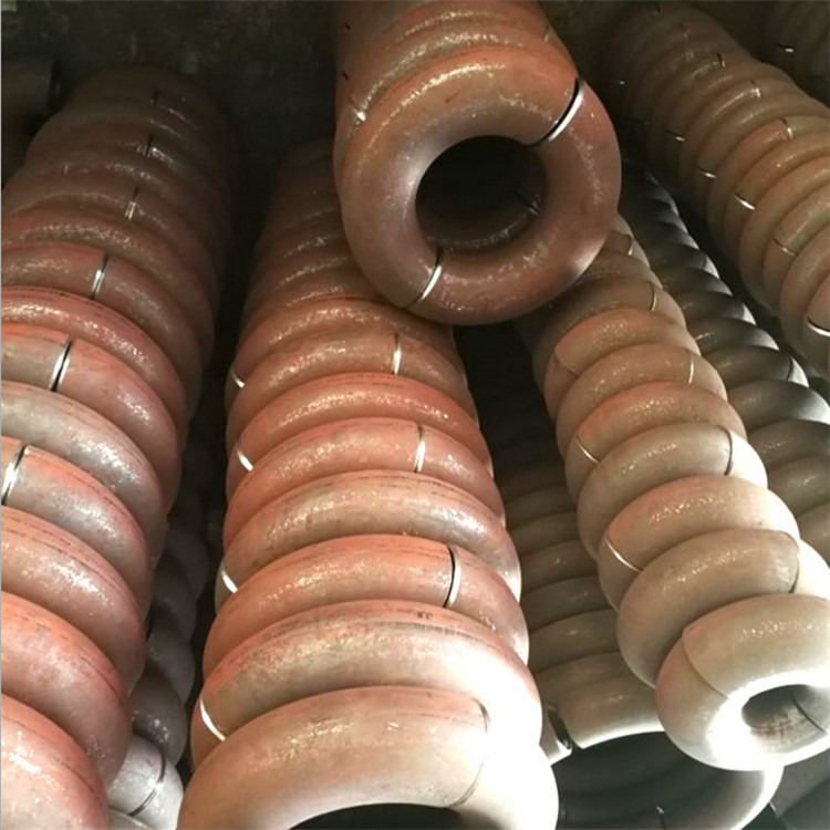 弯管的生产过程:弯管在进行生产的过程中可以有效的分为长半径厚壁弯头和短半径厚壁弯头。长半径厚壁弯头指它的曲率半径等于1.5倍的管子的外径,即R=1.5D。短半径厚壁弯头指它的曲率半径等于管子外径,即R=1.0D。 弯管的弯胎的精度也是影响弯管质量的因素之一。我们在弯胎制造时,除规格尺寸要求控制在一定公差范围时,同时也要求用户在使用时根据弯制管径选择相应的弯胎。管材本身的可弯曲性能与表面腐蚀情况,亦可能影响到弯管质量。现场施工时,操作者亦需了解被加工管道的材料,加工性能和对表面腐蚀情况作出产判断。 弯管的弯头是用于管道转弯处的一种管件,在使用时会管道系统所使用的全部管件中,所占比例**大,约为80%。通常,对不同材料或壁厚的弯头选择不同的成形工艺。目前,制造厂常用的无缝弯头成形工艺有热推、冲压、挤压等。