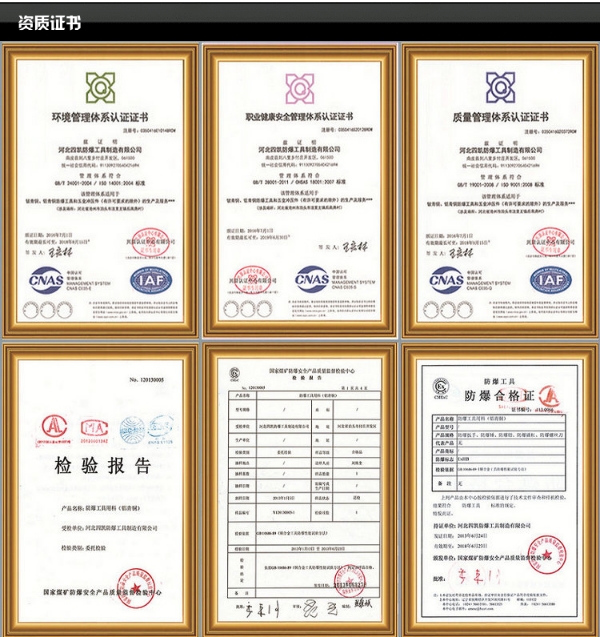 防爆敲击梅花扳手材质:铝青铜和铍青铜两种。这两种材质从颜色分铝青铜是黄色的、铍青铜是黄红色。从硬度分铝青铜HRC25而铍青铜HRC35。两种材质的产品都具有同样的防爆功能,其中的铍铜产品还有防磁的功能,因此对于工作环境要求更加严格的工作场所里特别适合使用。敲击扳手因为具备了敲击端让您使用更省力。