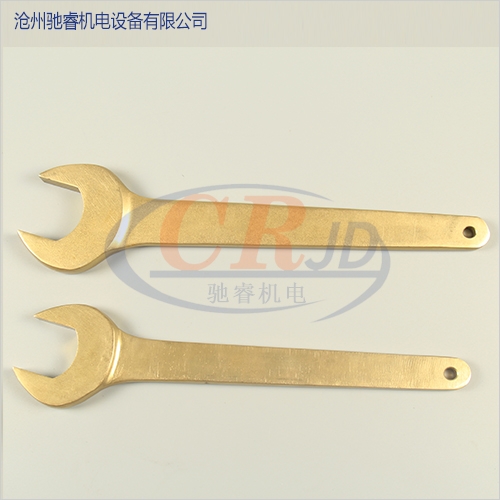防爆呆扳手的材质是铜合金,由于铜的良好导热性能及几乎不含碳的特质,使工具和物体摩擦或撞击时,短时间内产生的热量被吸收及传导,另一原因由于铜本身相对较软,摩擦和撞击时有很好的退让性,不易产生微小金属颗粒,于是我们几乎看不到火花,因此防爆工具又称为无火花工具。