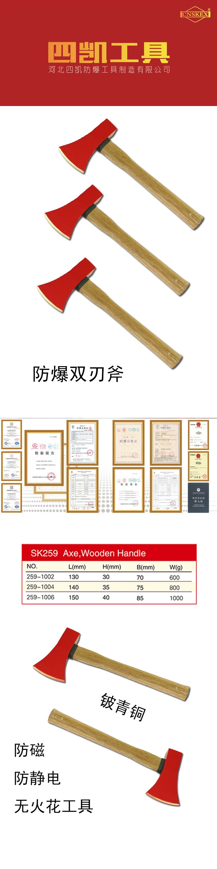 四凯防爆工具防爆双刃斧工具无火花工具