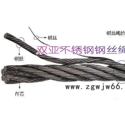 (1)不锈钢钢丝绳定义:用配制好的钢丝,在机器上,按规定一次多根捻制成单股绳,后用6或8个这样的股,配以纤维芯,再次合成的绳称钢丝绳。