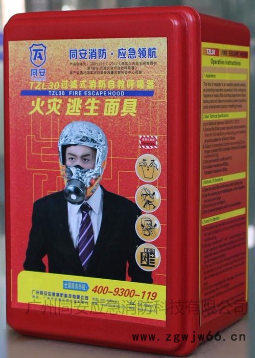 同安牌消防火灾逃生防毒面具TZL30型3C认证