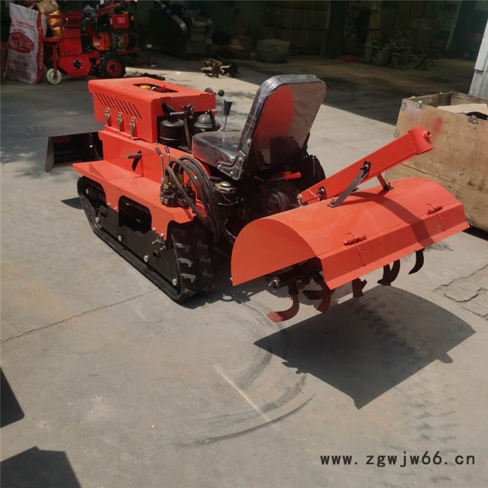 多功能 履带式开沟施肥机安装上不同的配件可以进行单独旋耕、回填、单独开沟、施肥、也可混合搭配使用。产品结实耐用,性能优越,操作方便.耐用:机身加厚,密,履带式行走,可进行原地转向。刀具都是加厚75号猛钢锻造,非常耐磨耐用,工作效率高.