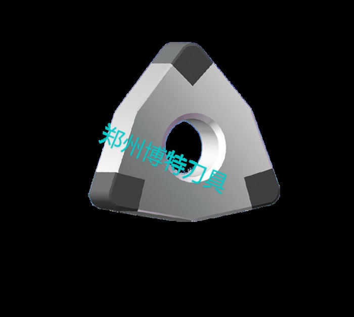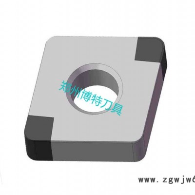 PCBN整体焊接式刀片是整体烧结PCBN小刀粒在高真空、高温环境下钎焊在数控合金基体上。刀尖部位是整体PCBN 材质,带中心孔定位。