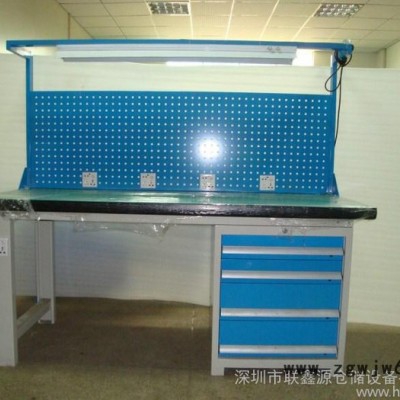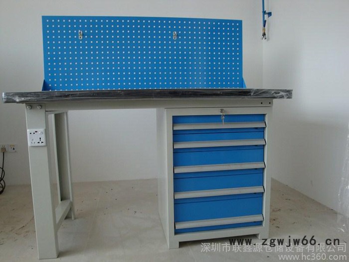 工作台适合于模具、钳工、检测、维修、组装等各种不同应用场合,具有良好的耐腐蚀性,耐脏性,抗冲击性和承重能力强。桌面经特殊处理,具有防腐、抗冲击力强等特点,多种桌面的选择,可配合不同的使用要求;所配置的抽屉、柜门方便使用者存储工具;桌角上预留电源孔,方便安装电源插座。