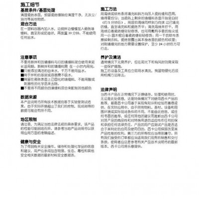 | 用途范围 | 室内室外墙面,地面用瓷砖、石材等铺贴填缝 |