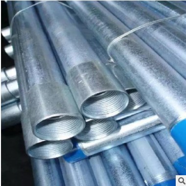 热镀锌管是使熔融金属与铁基体反应而产生合金层,从而使基体和镀层二者相结合。热镀锌是先将钢管进行酸洗,为了去除钢管表面的氧化铁,酸洗后,通过氯化铵或氯化锌水溶液或氯化铵和氯化锌混合水溶液槽中进行清洗,然后送入热浸镀槽中。热镀锌具有镀层均匀,附着力强,使用寿命长等优点。热镀锌钢管基体与熔融的镀液发生复杂的物理、化学反应,形成耐腐蚀的结构紧密的锌一铁合金层。合金层与纯锌层、钢管基体融为一体,故其耐腐蚀能力强。