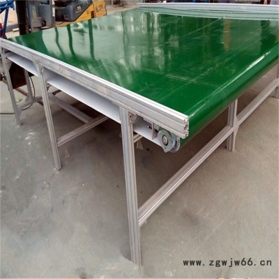 铝型材输送机价格。铝型材输送机防爆电机 大豆输送机绿色光滑带运输机新型铝型材输送机制造 牛奶输送机 皮带机材质,输送带上还可增设提升挡板、裙边等附件,能满足各种工艺要求,欢迎您来厂亲自验货提货,调心托辊组有多种类型如中间转轴式、四连杆式、立辊式等,其原理是采用阻挡或托辊在水平面内皮带向上方向跑偏则托辊组的下位处应当向左移动,托辊组的上位处向右移动,皮带机的皮带在整个皮带运输机的中部跑偏时可调整托辊组的位置来调整跑偏,一般导料槽的的宽度应为皮带宽度的三分之二左右比较合适