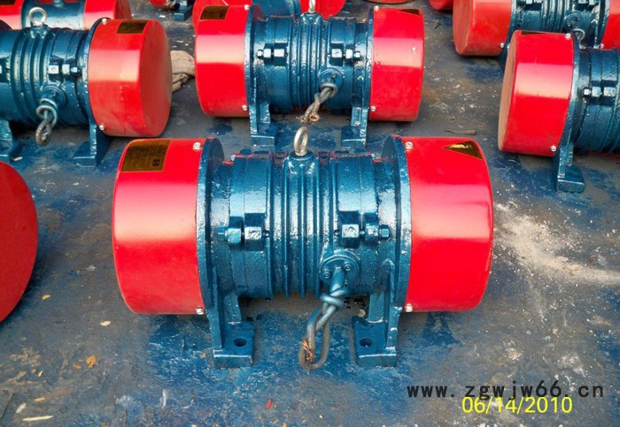 振动电机是动力源与振动源结合为一体的激振源,振动电机是在转子轴两各安装一组可调偏心块,利用轴及偏心块高速旋转产生的离心力得到激振力。振动电机的激振力利用率高端、能耗小、噪音低、寿命长。振动电机的激振力可以无级调节,使用方便,JZO、YZU、YZO、 YZS、YZD、TZDC 等型号的振动电机为通用型振动电机。振动电机可以应用于一般振动机械,如:振动破碎机、振动筛分机、振动打包机、振动落砂机、振动造型机、振动打桩机、振动提升机、振动充填机、料仓的振动破拱防闭塞装置等等。广泛的应用在水电建设、火力发电、建筑、建材、化工、采矿、煤炭、冶金、轻工等工业部门。