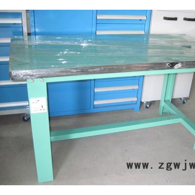 工作台适合于模具、钳工、检测、维修、组装等各种不同应用场合,具有良好的耐腐蚀性,耐脏性,抗冲击性和承重能力强。桌面经特殊处理,具有防腐、抗冲击力强等特点,多种桌面的选择,可配合不同的使用要求;所配置的抽屉、柜门方便使用者存储工具;桌角上预留电源孔,方便安装电源插座。