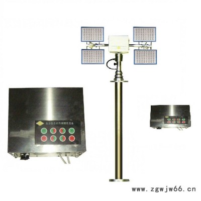 1.8m车载移动照明设备由三节气动升降杆将灯具部件升展到1.8m的高度,扩大了照射范围。1.8m系列车载移动照明设备具备有起、落、升、降功能,设备从初始的水平位置起升到90°后再在高度方向延伸到1.8m的高度,通过操作旋转云台垂直360°水平360°的全方位旋转来完成搜索定位照明。