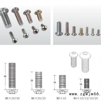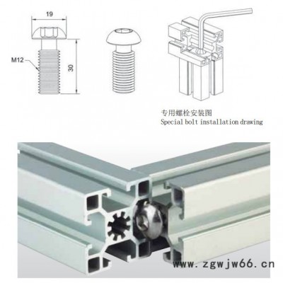 用途:工业型材框架一般采用内部连接方式,均使用专用半圆头螺栓,安装前需要在型材连接处攻螺纹与打工艺安装孔。为防止松动。