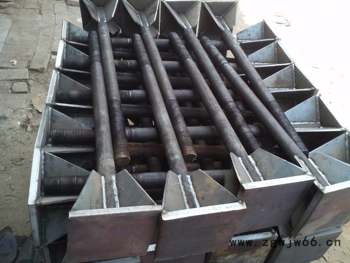 焊板地脚螺栓别名加劲锚板地脚螺栓、焊接地脚螺栓、锚爪式地脚螺栓、筋板式地脚螺栓、地脚栓、地脚螺丝、地脚丝等**埋于混凝土地基中,作固定各种机器、设备的底座用。7字地脚螺栓为地脚螺栓中较常用的一款。一般采用Q235钢材制作,强度高的使用Q345B或16Mn材质加工,也有用40Cr材质加工8.8级强度的产品,偶尔也有用二级或三级螺纹钢加工。地脚螺栓有毛料、粗杆、细杆不同形式之分。毛料即原材料钢材不经改制,用圆钢或线材直接加工而成;粗杆或称为A型,细杆或称为B型,都由钢材改制成相应要求的杆径后加工而成。焊接型地脚螺栓由单头螺栓焊接加劲铁板后制成。其抗拉拔能力强。根据使用的条件不同,分别可以达到3.6级、4.8级、6.8级、8.8级等等级。3.6级7字 地脚螺栓的抗拉能力为钢材本身的抗拉能力。Q345B或16Mn原材料直接加工的地脚螺栓其抗拉能力可达到5.8级的抗拉强度。4.8级、5.8级、6.8级及8.8级的抗拉强度参考GB/T3098.1中对于机械性能的规定。