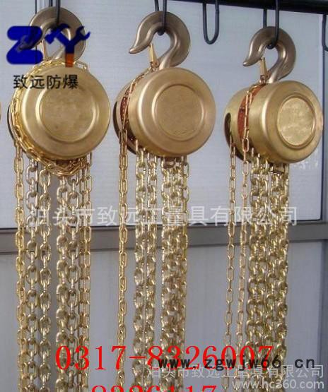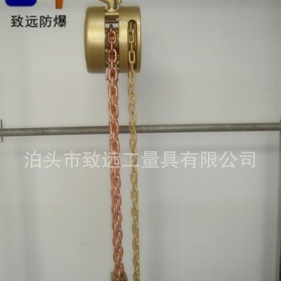 泊头致远防爆手拉葫芦:是一种特殊的安全工具,主要有两大类:铝青铜材质和铍青铜材质,我公司生产的防爆手拉葫芦防爆性能符合**GB10686-89标准。以铝青铜、铍青铜作为毛坯,手拉葫芦外壳采用H62铜合金材料。