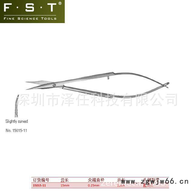 | Westcott 弹簧剪-微弯/11cm | 微弯/尖&尖头直径0.25mm/刃长15mm/11cm长 | F.S.T/Canada | 15015-11 |