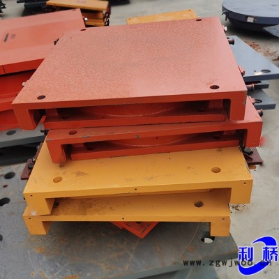 球型支座的转角是由中座板的凸球面与下座板上的球面四氟板之间的滑动来实现的。通常由于支座的转动中心与上部结构的转动中心不复合,而在中座板和下座板之间形成第二滑动面。根据上部结构与支座转动中心的相对位置,球面转动方向可以与平滑动方向一致或相反。如果两个转动中心复合,则无平面滑动。