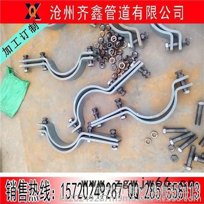 沧州齐鑫管道有限公司 主要生产电厂系列各种规格:D1长管夹,D2三孔管夹,D3双孔短管夹,D4焊接单板,D5焊接双板,D6管夹横担,D7焊接横担,D8管卡横担,D9立管管夹,D10立管短管夹,D11立管焊接单板,D12立管焊接双板,D13横担弹簧用焊接管座,D14横担弹簧用管夹管座,Z1管夹固定支座,Z2焊接固定支座,Z3管夹滑动支座,Z4管夹导向支座,Z5焊接滑动支座,Z6焊接导向支座,Z7管卡,Z8槽钢支座,Z9立管支承板,Z10立管支座,Z11热压弯头托座,Z12循环水支座,Z13循环水托座,L1螺纹拉杆,L2左右螺纹拉杆,L3双孔吊板,L4三孔吊板,L5花兰螺丝,L6吊杆螺纹接头,L7环形耳子,L8U形耳子,L9单向滚动吊板,L10双向滚动吊板,F1六角螺母,F2大角扁螺母,F3垫板,F4.球面垫圈,F5槽钢加强板,F6垫圈,F7焊缝加强板,F8单槽钢吊杆座,F9单向螺杆,F10双头螺杆,F11槽钢助板,F12工字钢助板F13槽钢用方斜助板,F14六角头螺栓.T1单板整定弹簧支吊架,T2双板整定弹簧支吊架,T3上下方整定弹簧支吊架,T4支架整定弹簧支吊架,T5横担整定弹簧支吊架,G11板缝吊杆,G12单孔吊板,G13U形吊板,以及,G21G21到G51根部.