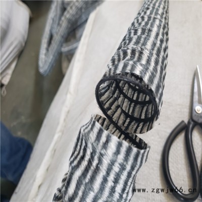 1、高碳钢丝:磷酸防锈处理、外覆PVC防止酸碱腐蚀,独特的钢线螺旋骨架确保管壁表面平整并承受压力。