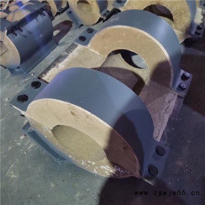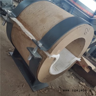 隔热材料的选取可根据实际管道应用的温度以及环境采用不同材料,其中比较常见的有蒸汽管道专用的耐高温蛭石隔热层,热水管道用聚氨酯隔热管托,以及耐低温阻燃型聚异氰尿酸脂聚氨酯隔热管托。经过多年生产实践及与研究机构的多次合作,在传统绝热材料配方的基础上,开发出了以多种硅酸盐混合物为基础骨架原料,配以辅料,经过严格的配比混合静压成型烘干检验等多道工艺加工而成。成型后的绝热材料具备硬度高、强度好、导热系数小等特点。
