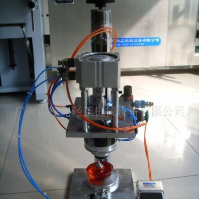 香水锁盖机又名玻璃瓶香水锁口机或香水轧盖机,它是专门针对香水瓶盖而设计的一种特殊轧盖机.它一般是根据客户客户提供的香水瓶和卡口喷头瓶盖而定制不同大小的锁盖装置。香水锁盖机为夹紧式收口机,适用于喷雾式瓶盖的收口,利用夹头将瓶盖收口,紧固于瓶口凸缘上。整机由机身、台面、夹紧装置和气动控制系统组成。