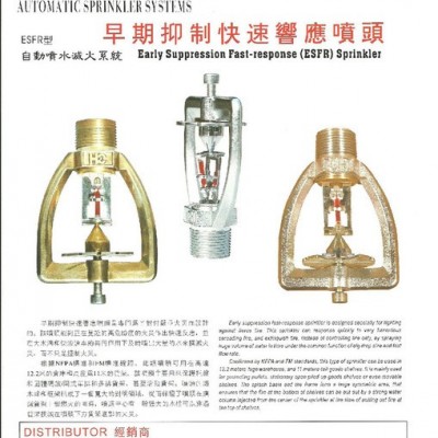 早期抑制快速响应喷头是专门为了对付严重火灾而设计的。该喷头能对正在蔓延的高危险度的火灾作出快速反应,并在大水滴和快流速率的共同作用下及时喷出大量的水来扑灭火灾,而不是只是控制火灾。