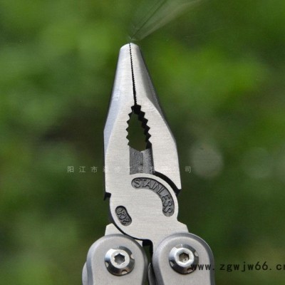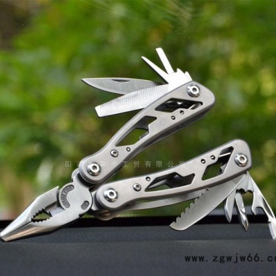 简介说明:此款产品集合多功能于一体,把日常所需的工具巧妙地收纳在体积仅为10*5*2厘米的工具里,大大地节省了空间体积,便于携带,功能强大十分实用,优良材料配合阳江精湛的制刀经验,深受国内外客商的赞赏和肯定,产品广泛适用于户外运动、野营探险、汽车应急、日常家用等。