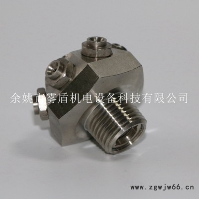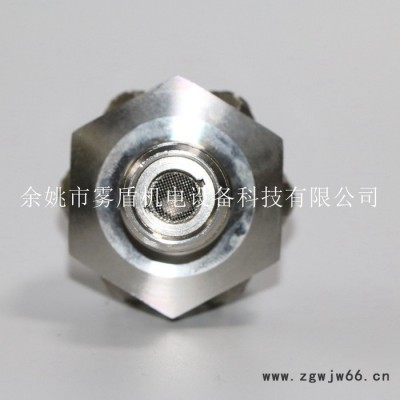 由本体、喷雾芯、喷雾嘴、防尘罩、过滤网等构成,一定压力的水通过过滤网进喷头后,在喷雾嘴内相互旋转产生动能,