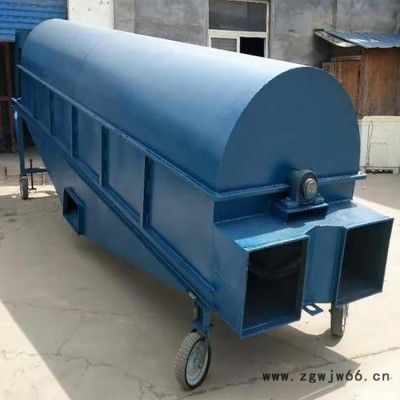 滚筒筛由电动机、减速器、底盘、密封帽,进料口和出口料组成。当物料进入滚筒装置后,由于滚筒装置的倾斜与转动,使筛面上的物料翻转与滚动,使合格物料(筛下产品)经滚筒后端底部的出料口排出,不合格的物料(筛上产品)经滚筒尾部的排料口排出。由于物料在滚筒筛的滚筒内的翻转、滚动,使卡在筛孔中的物料可被弹出,防止筛孔堵塞。