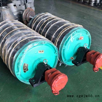 WD型电动滚筒功率在30千瓦以下,一般设计成电机悬置式,称WD1型;功率在30千瓦以上,电机为地脚固定,称为WD2型。