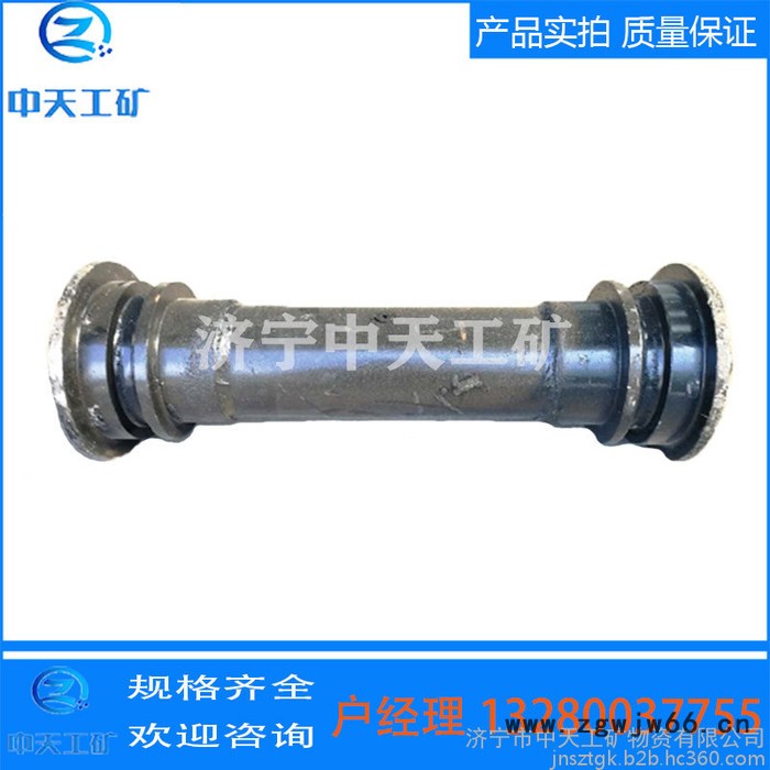 刮板机机尾滚筒,它包括挡板、紧定螺钉、密封圈、轴瓦、轴套、滚筒体和轴,其特征在于:靠近轴的轴身,在轴两头的轴颈上,对称装配有轴套,轴瓦套装在轴套的外周;靠近轴套在轴的轴颈上,装有密封圈,挡板的一端面,紧靠滚筒体和轴瓦紧压在密封圈上,有数量大于等于1的紧定螺钉,把挡板与滚筒体连成一体。这种刮板机机尾滚筒承载能力大,耐冲击,结构简单,便于维修,能适用于多水、多尘的工作环境,使用寿命长,有极大推广价值。滚筒粗出直径为250mm,长度500mm,单重69kg,这种滚筒结构简单,易安装。防止发生飘链现象。