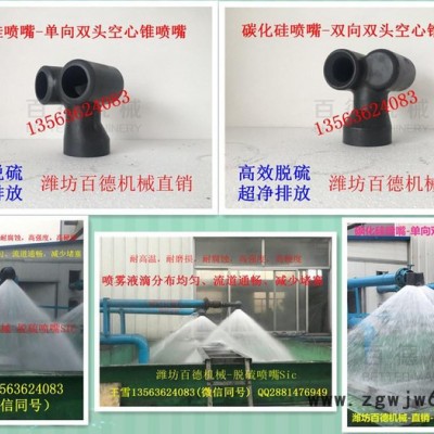 碳化硅脱硫喷嘴是火力发电厂、大型锅炉,脱硫除尘成套装置的关键部件。该产品具有高强度、高硬度、抗强烈腐蚀、剧烈磨损、耐高温等优良的性能,在恶劣的条件下有超长的使用寿命。 我公司生产的反应烧结碳化硅脱硫雾化喷嘴,喷雾液滴分布均匀、流道通畅,无阻塞现象,完全代替进口产品,填补了国内空白。目前有螺旋型、旋流型、液柱型三大系列几十多个品种,已应用于多家火电厂和大型锅炉的脱硫除尘装置中,运行状态良好