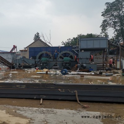 轮式洗沙机是配合筛沙机或制砂机使用的一种水洗式洗砂设备,可以将制砂机制出的混合砂子洗去其中的石粉、泥土或其他杂质,从而提高砂子的质量。