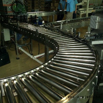 A.直辊转弯机:由于辊筒内外侧直径不变,转弯角速度不同,相同时间内转过的弧长不同,物件在转弯的同时还发生自转,所以输送物在转弯时靠外侧护栏、护轮、导轨的辅助进行输送。直辊转弯机只适用于回转体或无角度要求的物件输送,物料转出时会改变输送方向。