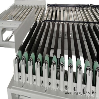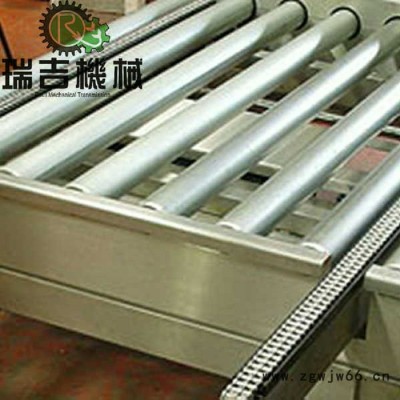 结构形式:按驱动方式可分为动力滚筒和无动力滚筒,按布置形分为水平输送滚筒输送机、倾斜滚筒输送机和转弯滚筒输送机。还可按客户要求特殊设计,以满足各类客户的要求。滚筒线内宽度由客户指定,可按客户需求制作。转弯滚线标准转弯内半径为300、600、900、1200mm等,也可按客户需求采用其它特殊规格。直段滚筒所用的滚筒直径有38、50、60、76、89mm等。转弯滚筒的锥度我们会根据输送物体的重量、外形尺寸、线速度等来设计。