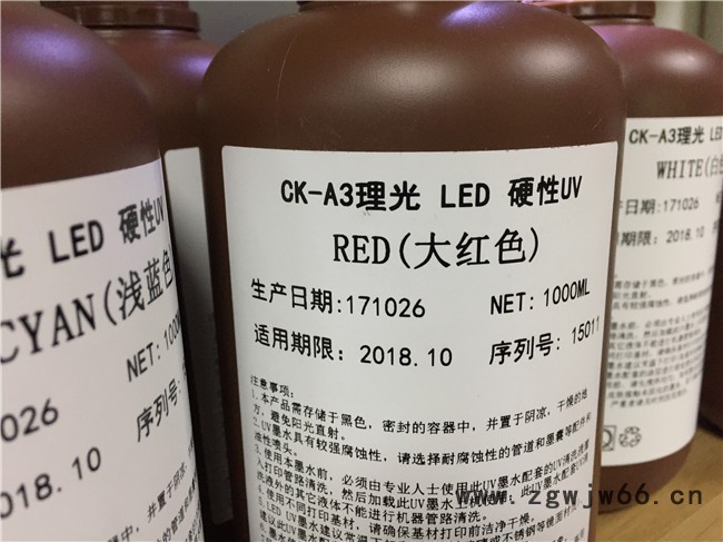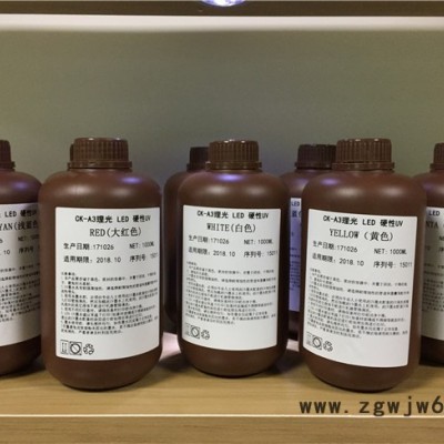 基本介绍 君奥UV墨水采用**进口原料,不含挥发性有机溶剂,超低粘度,无刺激性气味;直径达纳米微粒,喷墨流畅,可确保墨水在喷射印刷过程中无堵塞喷头现象,延长喷头使用寿命;健康环保,色彩鲜艳靓丽,饱和度高,图像更清晰;UV墨水UV墨水即喷即干,固化速度快,附着力佳,可与目前市场上使用的各种型号的喷头UV平板喷绘机匹配。耐擦耐刮、防脱落,耐溶剂、高光泽。UV墨水现有C、M、Y、K、R、LC、LM、白,8色,耐晒级别7-8级。 性能特点