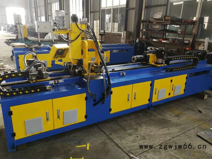 可加工直径在Ф76.1壁厚2mm内的铜管、铝管、不锈钢管及钢管.该机具有良好的稳定性、定位准确、效率高的特点。该设备带有旋转功能,可以加工90度,180度方向孔。通过更换模具可加工Ф32~Ф76.1mm的管径,夹紧、冲孔,拔孔等机构采用液压控制,工件定位由高精度伺服驱动,整机控制采用PLC控制,通过触摸屏界面进行参数设定及操作切换,操作简单方便、并可存储200个以上产品的加工参数.